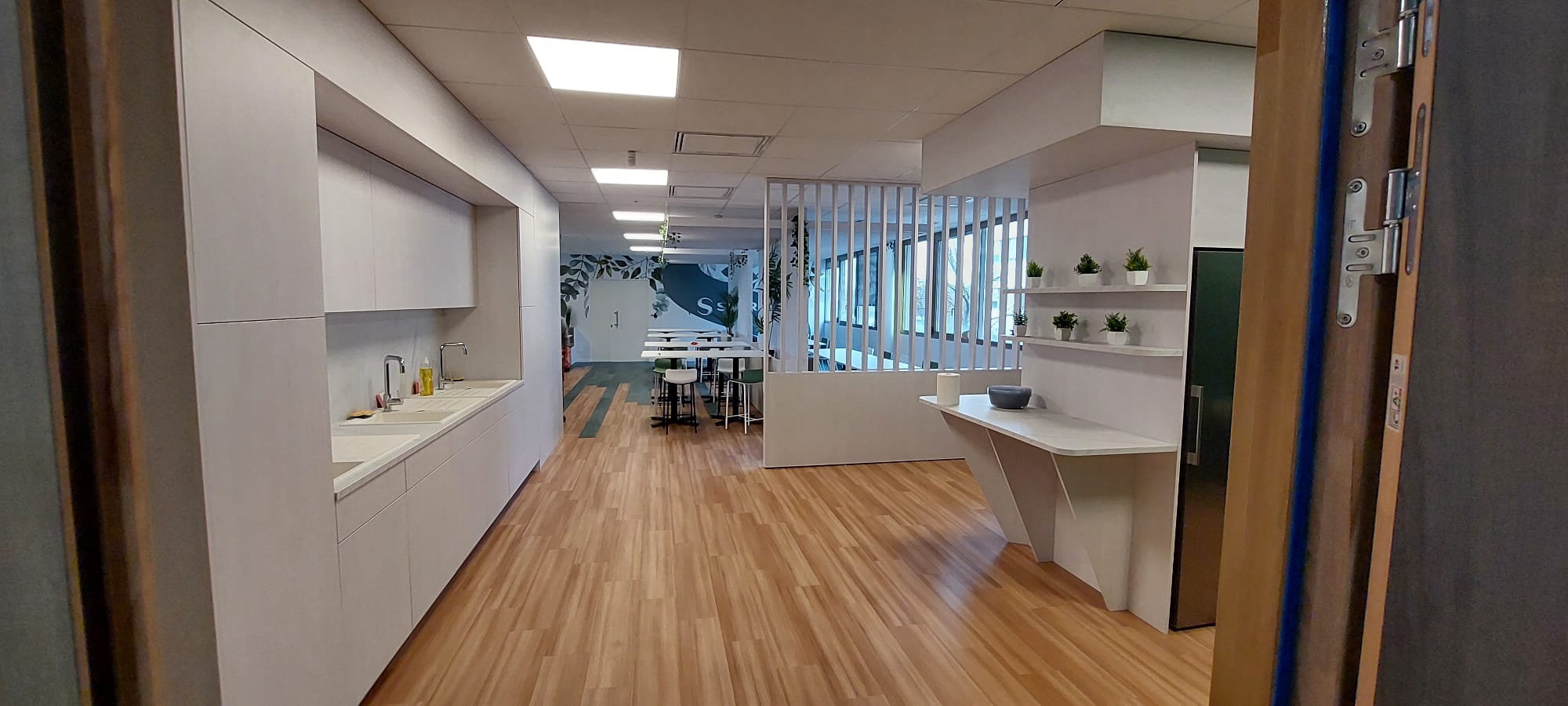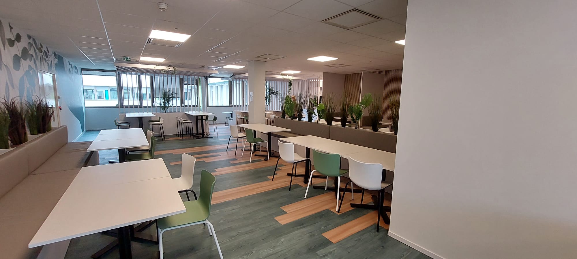 De plus, ils créent des zones plus intimes, malgré la grande surface de la cafétéria.