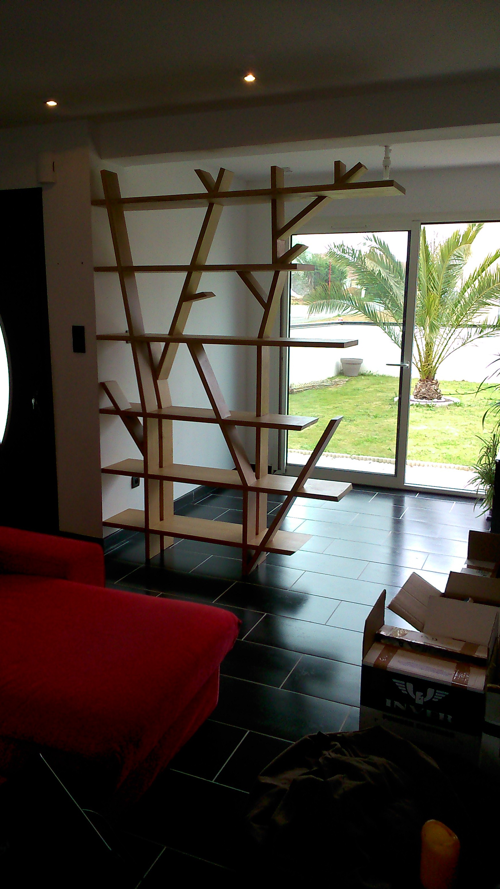 Fabrication, sur mesure à notre atelier et installation, sur place, d’une bibliothèque entièrement en chêne massif.